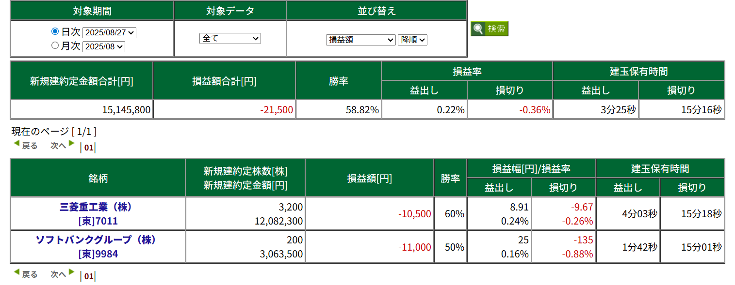 今日も三菱重工(7011)とソフトバンクグループ(9984)にはいりましたがいいとこなし、ちょっと期待値が低いトレードをしてるので全体的に見直ししなければいけませんね><