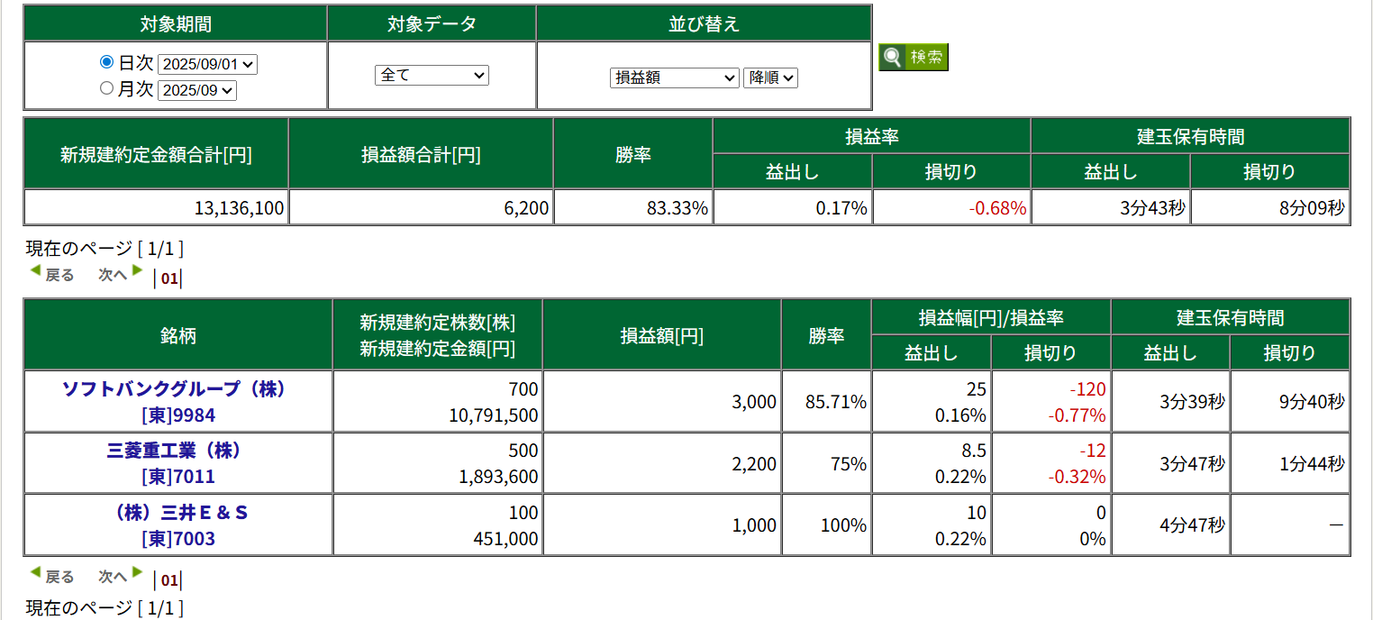 今日も最近デイトレ主力銘柄の三菱重工(7011)とソフトバンクグループ(9984)とちょっとだけ造船銘柄の三菱E&S(7003)にはいりました。100株とかの小ロットだとロスカットも気軽にできて気持ちが少し楽にトレードができます。うまくなるまではこのままがんばってみます。