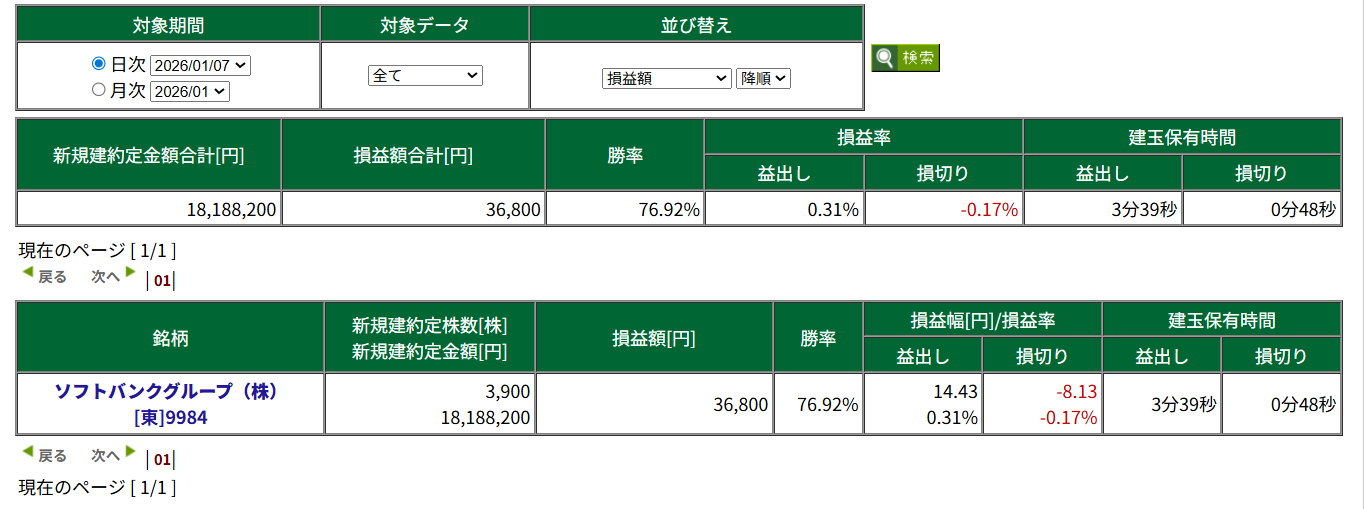 2026/01/07 デイトレード収支